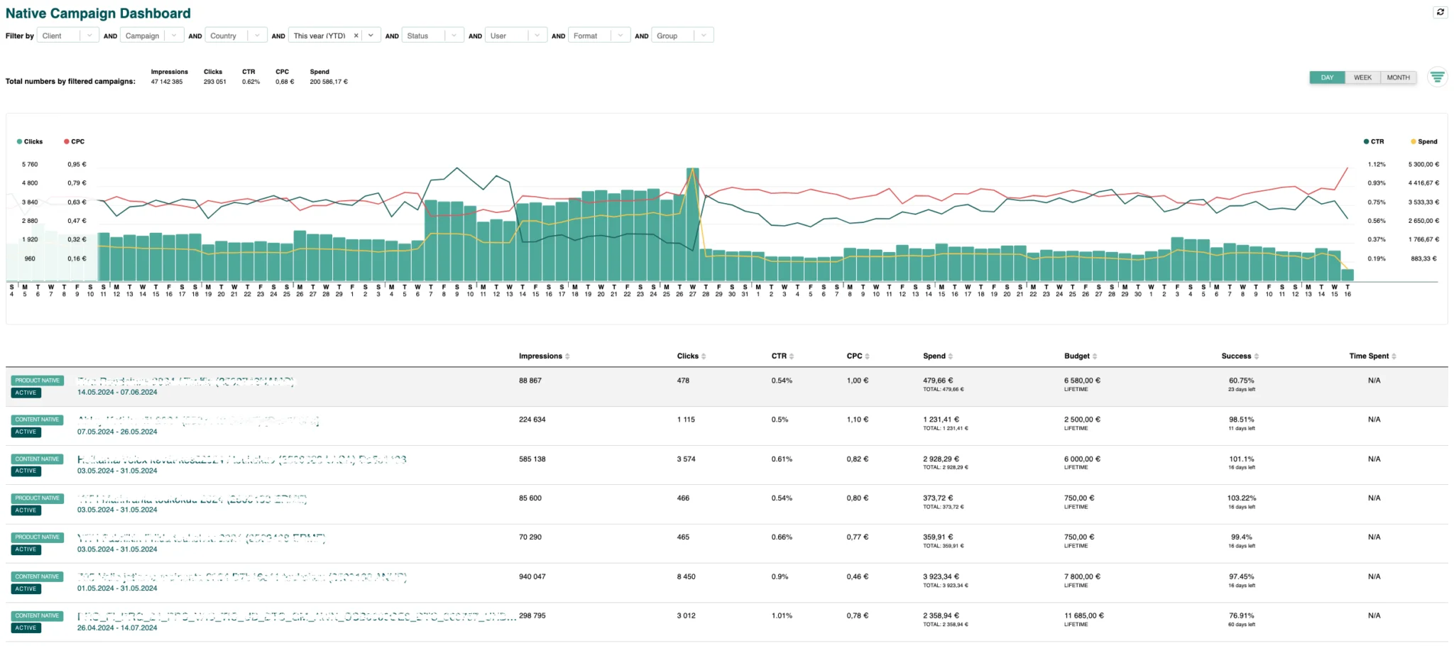 The campaign ID 20345 is designed to drive targeted traffic to the site with a goal of increasing brand awareness within the tech market in Austria. The campaign has a clear objective, starting from January 15, 2025, and concluding on February 15, 2025.