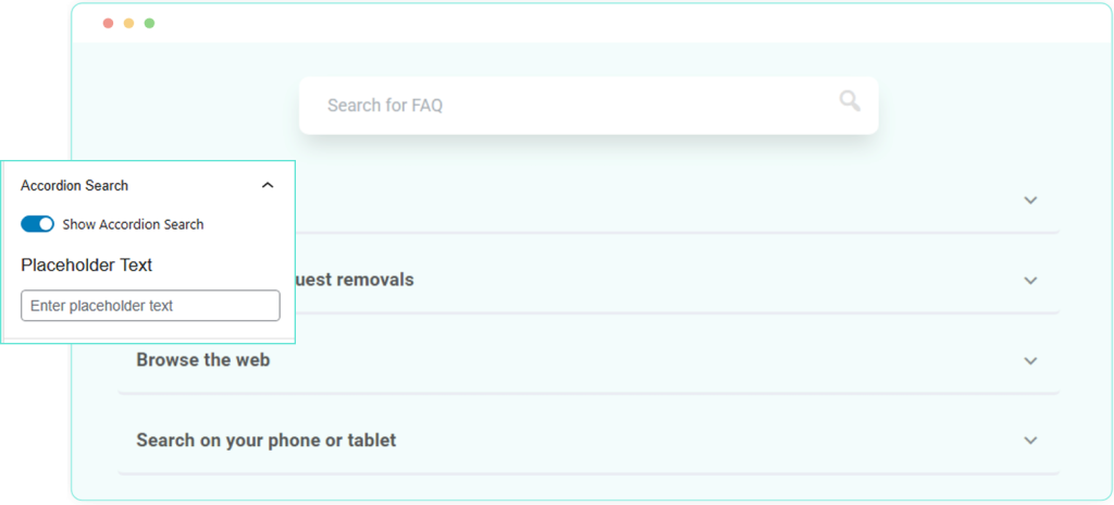 Enable a search bar to help users find specific FAQs quickly. It’s useful when you have a long list of FAQs.